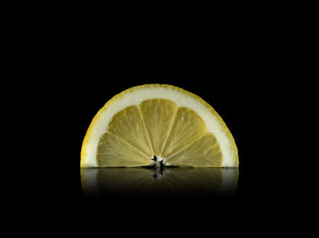 Lemon cutaway, black background, fruits