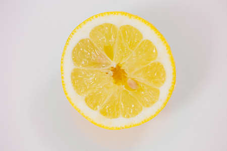 Fresh lemon slice on a white background.