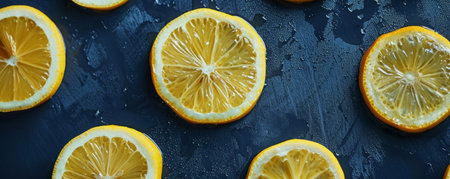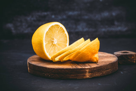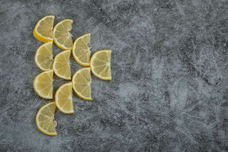 Sliced lemons on a dark textured background