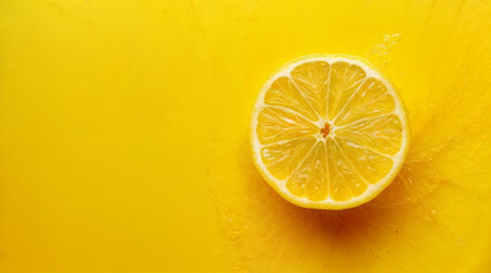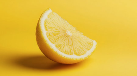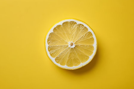 A minimalist image of a lemon slice on a smooth yellow background, highlighting its vibrant color.