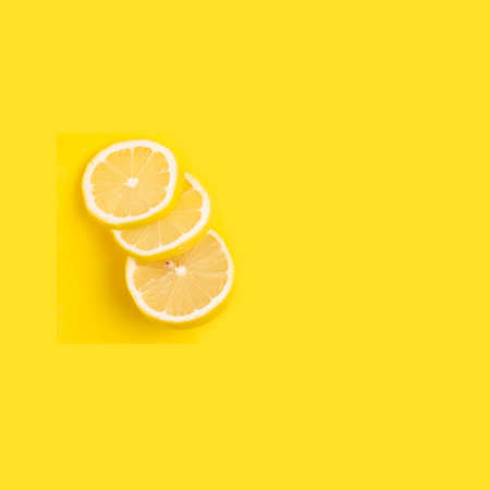 Lemon cut into slices on a yellow background.