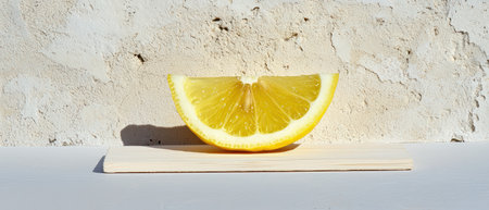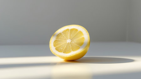 AI Generated. Lemon slice on white surface with sunlight