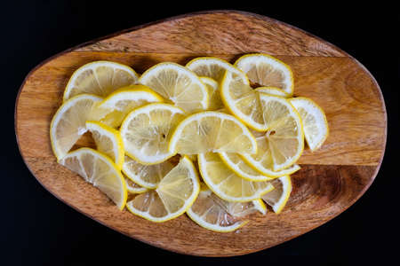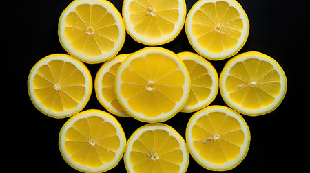Sliced lemon slices on a black background