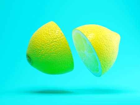 Lemon Citrus fruit. Creative Neon Color. Surreal, Minimal fashionable Style