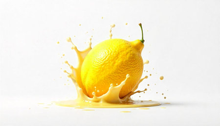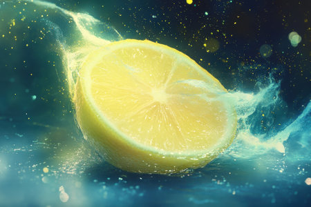 Fresh lemons splashing in vibrant and colorful liquid, creating a refreshing and lively scene full of energy.