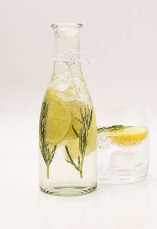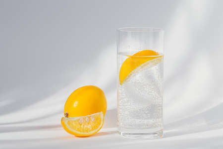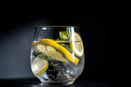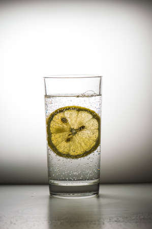 Glass of water with lemon slices Citrus ingredient added to drinkware