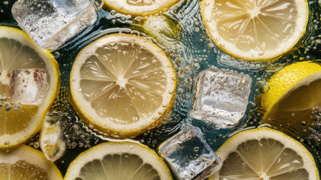 Slices of lemon in ice water, close-up, refreshing drink. high quality photo