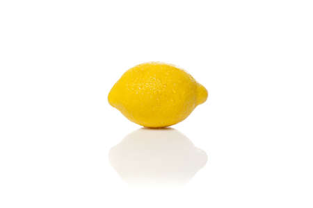 A fresh yellow lemon against a white background