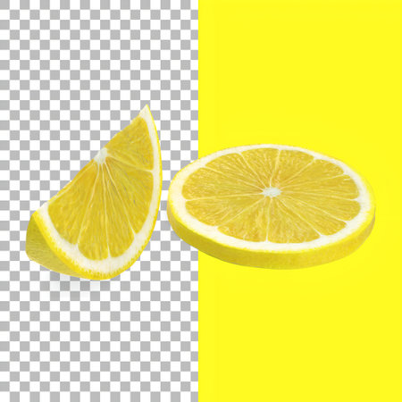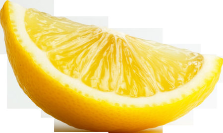 Close-up of a fresh lemon slice on transparent background, vibrant citrus concept