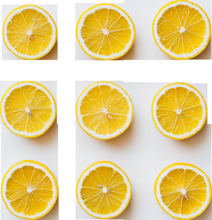 Slices of lemon arranged on a transparent background, symmetrical pattern. Freshness and citrus concept