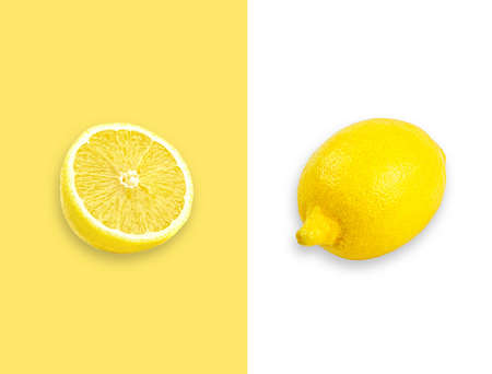 Yellow lemon on white background.