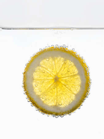 Slice of fresh lemon in soda water