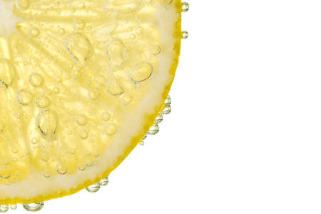 Bubbles on a lemon segment in soda water
