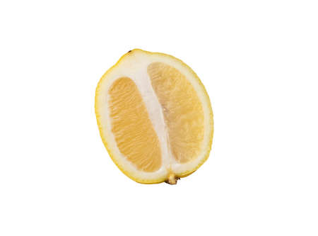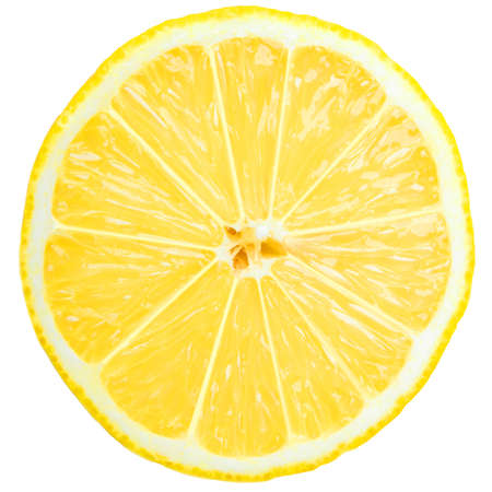 Single cross section of lemon. Isolated on white background. Close-up.