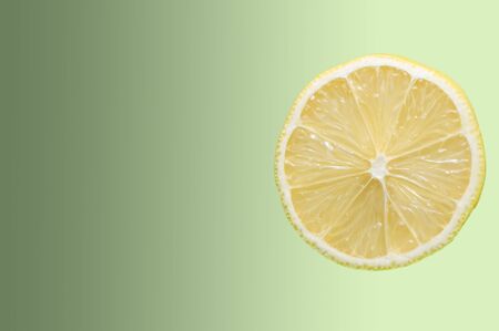 slice of lemon close up on a green background