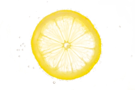 fresh lemon slice over white