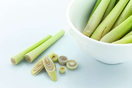 Sliced ​lemon grass and lemon grass on a white