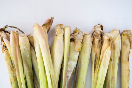 Fresh lemongrass placed on a white background.