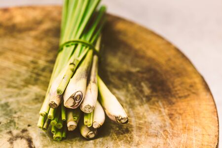 Fresh lemongrass (citronella) on wooden background - Spice for health.