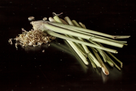 Organic lemongrass on dark
