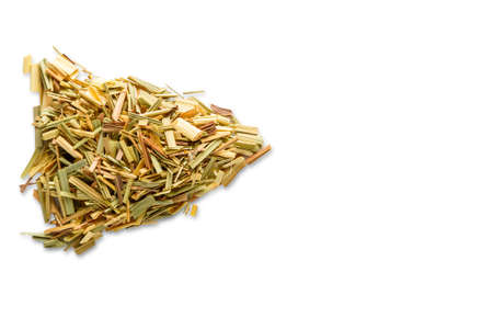Lemongrass herb for seasoning or tea sprinkled on a white background.