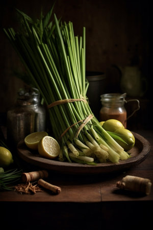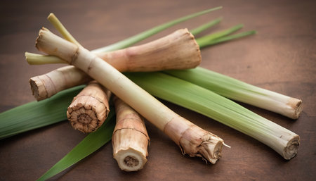 Generative AI : fresh lemongrass on wooden background
