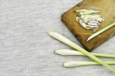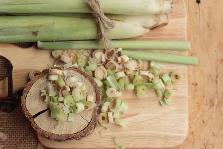 Lemon grass on wooden board