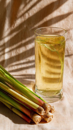lemon grass juice in a glass with lemongrass and ginger