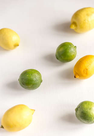 Ripe lemons and limes on white background