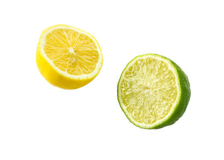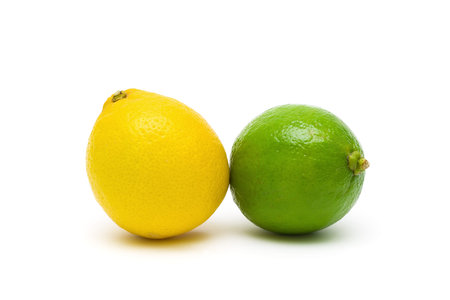 lemon and lime closeup isolated on a white background.