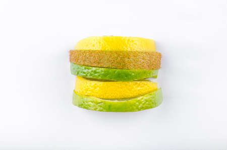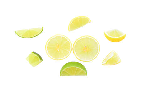Lemon and lime slices on white background