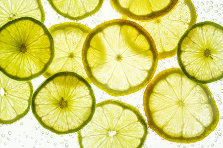 Detail of halved lemon and lime