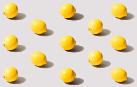 Minimal pattern of organic natural lemons fruits. Arrangements of yellow on gray background colors of 2000.