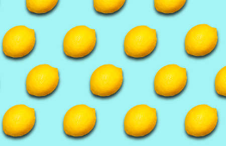 Colorful repetitive pattern made of isolated lemons on bright aqua blue background