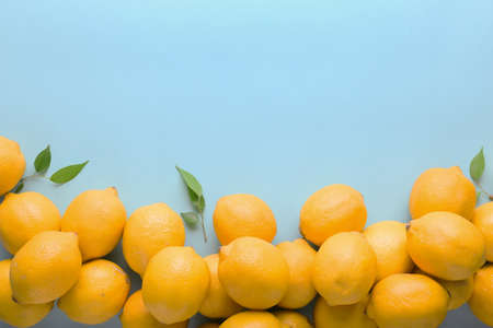 Many lemons on color background