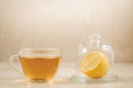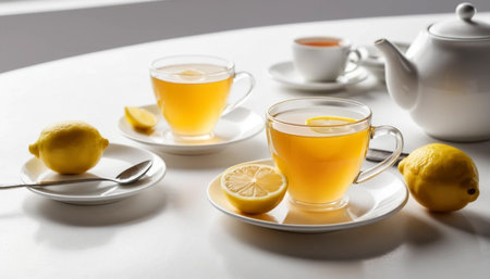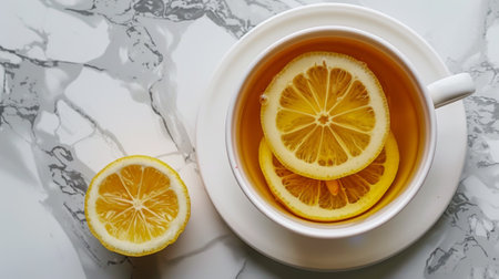 food and beverage photography, a refreshing lemon ginger tea on a marble table, perfect for a morning boost add your text alongside this invigorating image