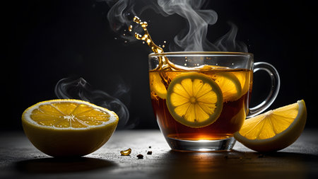 AI Generated. A Cup of Hot Lemon Tea with Steam Rising