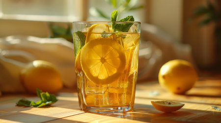 detox drink, revitalize with a glass of iced lemon tea with mint, a refreshing and detoxifying beverage to support a healthy lifestyle