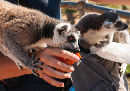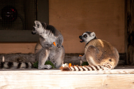 The ring-tailed lemurs Lemur catta eating in Beijing Zoo