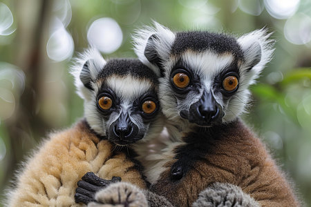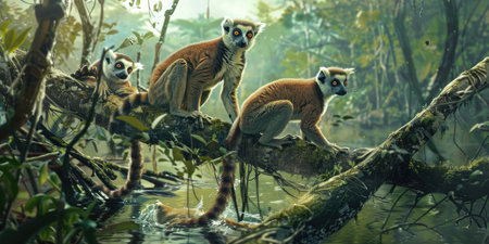 Curious lemurs leaping through the treetops of Madagascar's lush rainforests