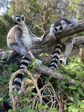 Ring-tailed lemurs (Lemur catta) sitting on the tree branch