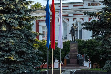 Tula, Russia - April, 30, 2021: Monument to Lenin at the city administration building in the center of Tula.