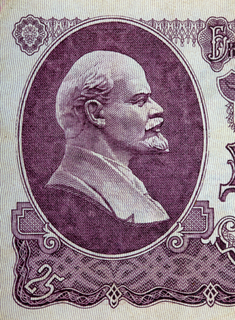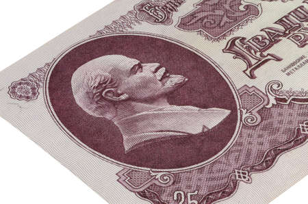 Part of the banknote 25 rubles ussr with a portrait of Vladimir Lenin Macro shooting
