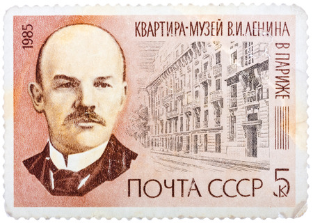 USSR - CIRCA 1985: Stamp printed in Russia shows Portraits and Lenin Museum - memorial apartment, Paris, France, circa 1985