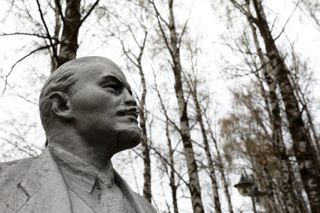 Kaliningrad Region, Russia, April 24, 2022. Bust of Vladimir Lenin. monument Monument to the leader of the revolution in Russia in 1917 Lenin.