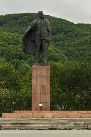 Petropavlovsk-Kamchatsky, Russia - August 14, 2016: Monument to Vladimir Lenin at the Theater Square in Petropavlovsk-Kamchatsky.