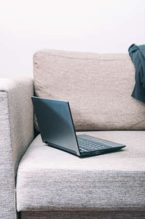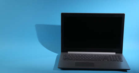 Laptop with blank screen on gray background, mockup template, copy space for picture or advertisment.