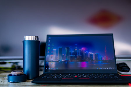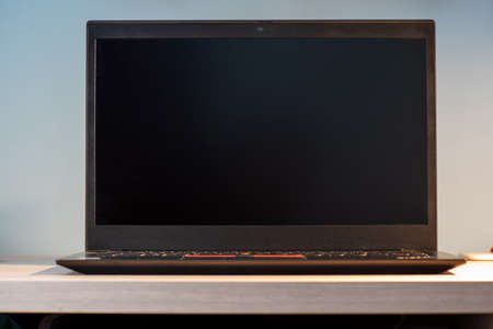 Home office laptop on desk very clean and organized concept for working from home and abroad concept. Clean and organized workspace.