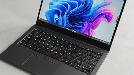 Bucharest - October 29 2019: Lenovo Thinkpad logo from a new generation X1 Carbon laptop
