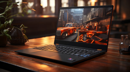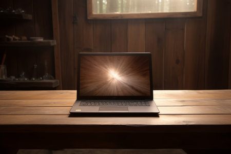 Efficiency at Your Fingertips: Productivity Empowered by a Laptop on a Brown Wooden Table